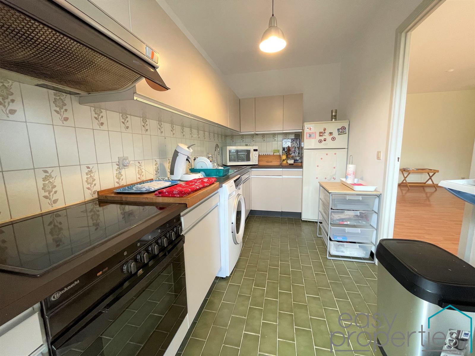 Situé au premier étage d'un immeuble du domaine de Steenvelt, quartier calme et verdoyant à proximité immédiate du Ring, nous vous proposons cet appartement d'une superficie de ± 60 m² qui se compose : hall d'entrée avec vestiaire, vaste et lumineux séjour de ± 30 m² donnant sur une terrasse sans vis à vis, cuisine équipée avec emplacement machine, hall de nuit, grande chambre, salle de douche, wc et buanderie. Volets partout, possibilité de louer un garage box pour 50€/mois, accès à un terrain de tennis, pétanque, zone bbq et plaine de jeux. PEB en cours. INFOS ET VISITES PAR MAIL [email protected]